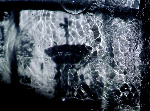 Today’s murky PotD — a photo of another photo projected into a full bathtub from Flickr user sintixerr — has a lot of things working together to make it pop out. The cool blue tones go great with the slightly off center shadow of the fountain giving the photo a dark and beautiful feeling. The bubbles give it an unusual eye grabbing texture, and the way they stop just before the shadow is perfect.