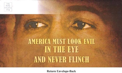 Virginia has become one of the primary battlegrounds for McCain this election year, and the Post is reporting today that the Obama campaign has a much more substantial ground operation in place. Beyond Frederick’s boneheaded remarks, the Virginia GOP recently sent out a mailer picturing Osama bin Laden’s eyes alongside the message, “America Must Look Evil in the Eye and Never Flinch.” Tomorrow’s campaign rally is sure to be notable, either for how hard the Republicans will try to restrain themselves, or how easily they fall back into accusing Obama of being a terrorist.