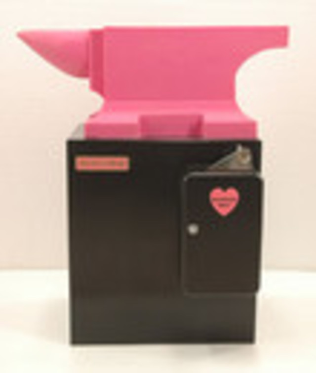 U Street’s new Hamiltonian Gallery opened on October 11 to a bustling crowd of curious onlookers. Those who were there to see how the space had been transformed after its twenty years of vacancy were in for a treat right from the start, and greeted at the front door by Nao Matsumoto’s Whore, an oversized but functioning quarter-fed vibrator. The sculpture doesn’t much resemble your typical sex toy, but instead is a huge, anvil-shaped pink eraser perched atop a black metal box labeled “WHORE”, with a cutesy pink heart informing us it takes quarters only (it really does).