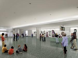 Rendering of renovated lobby and extensive artifact walls at American History Museum |