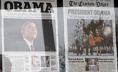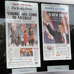 Newseum front-page photos by Flickr user bullneck (one, two, three). Washington Post front-page photo by Flickr user Daniel.