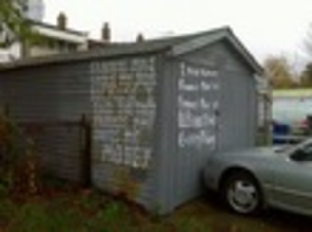 Henry Paulson? Ben Bernanke? Do you want the truth? A shed near Stadium Armory in Northeast testifies on the bailout. Photo by one Patrick, uploaded by