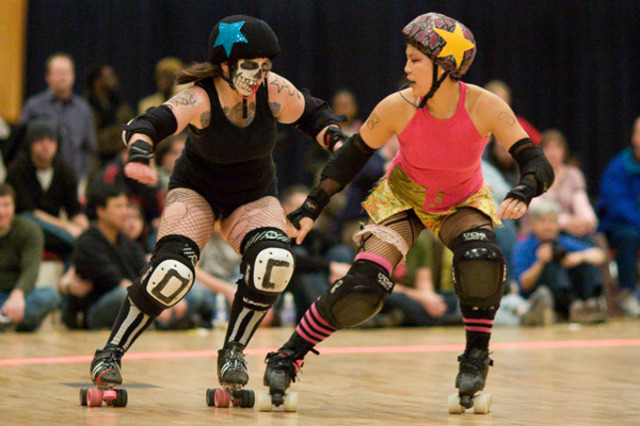 Saturday’s DC Rollergirls event at the D.C. Armory found team Scare Force One entering the bout undefeated over the entire two year existence of DCRG, but left them with their first ever loss, to scrappy challengers DC DemonCats. DCist contributor James Calder has become more or less the unofficial official photographer of DCRG, and he was kind enough to share some of his photos from this historic matchup. There are five remaining scheduled bouts on the Rollergirls schedule; check the web site for dates.
