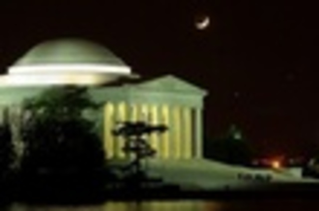 Good morning, Washington. Did you remember to look up and take in the Venus, Jupiter and crescent Moon alignment last night? Frequent Flickr contributor philliefan99 took a bunch of amazing shots of the planets from the National Mall area, including this one featuring the Jefferson Memorial.