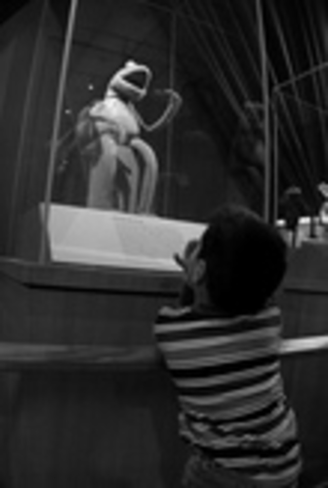 Kids these days have their Dora and their Bob the Builder to teach them Spanish and construction, but Kermit the Frog taught most of us how to stay calm in the midst of stalkers and teleporting scientists. Flickr user philliefan99 captured the scene as Kermit’s legacy is absorbed by future generations. EXIF.