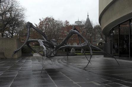 If you head out anywhere for art this weekend, make it the Hirshhorn. As you enter you’ll see the new installation of Louise Bourgeois’ Crouching Spider, which the artist describes as “a defense against evil.” (Bourgeois, who turns 97 on Christmas Day, has a retrospective coming to the Hirshhorn in February.) Inside, starting next Monday, see the exhibit in the Black Box new media space, featuring video work by Ori Gersht.