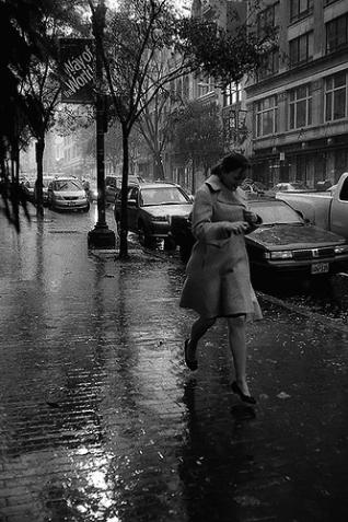 There is something so delightful about this photo by Flickr user Aziz Y. The woman’s misfortune at being caught sans umbrella has blessed us with this splendid vignette of a rainy street scene.