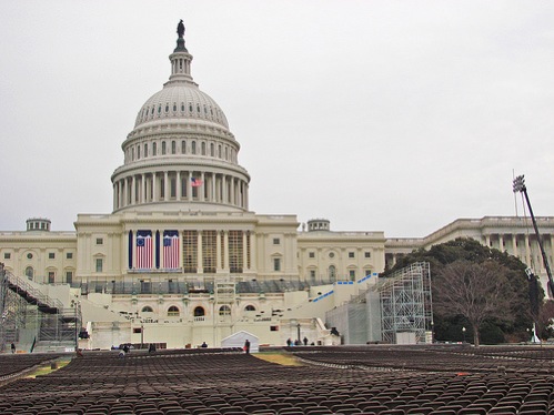 Check it! Flags on the Capitol! Seats on the lawn! Ronnie R has the view that very few of us should expect to see come Tuesday. Think they’d let any of us take a seat for the dress rehearsal?