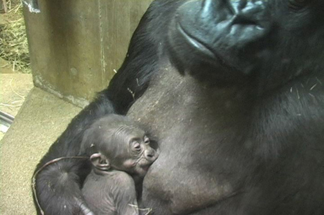 For the time being, Zoo officials will be watching the western lowland gorilla infant’s progress carefully. In a press release, Zoo officials note that Mandara is a successful and experienced mother, and officials expect her to bond with her newborn. Note that the parents have a somewhat unusual backstory: Baraka was a junior member of the tribe and nursed by Mandara before taking the top position as silverback. The Washingtonian ran a fasinating April 2007 story detailing the ups and downs in the House of Ape over the last few years. Suffice it to say, a birth represents a moment to celebrate.