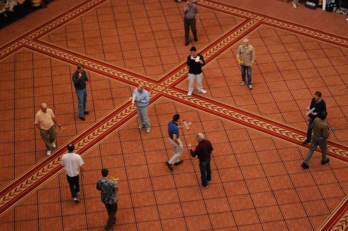 Here the D.C. Maxecuters are displaying the latest in model airplane technology at the National Building Museum. This looks like incredible fun. Something about the color and pattern of the tiling on the NBM’s floor, though, makes me wish that these were steampunk enthusiasts showing off model airships. Or maybe that association is just mine.