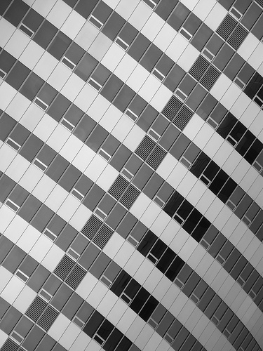 Although the subject consists solely of metal sheets, tinted windows, and vents, Flickr user ameschen lined up the perfect shot of the North Tower of Rosslyn’s Twin Towers. The angle at which the shot is taken, by tilting the camera clockwise, transforms the building’s curves into a cascade of modern industrial construction. EXIF.