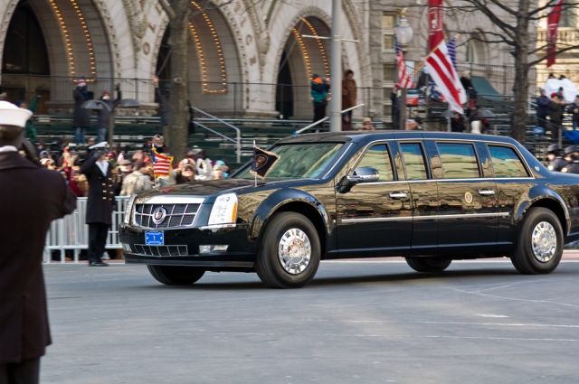 WAMU says that he did not, opting instead to display special inauguration-themed plates on the presidential limousine, aka The Beast, during Tuesday’s Inaugural Parade. As you can see in the above photo, the plates are blue, and display the numeral ‘1.’