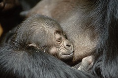 Photo by dcmandrillThe National Zoo announced today that its three-week-old baby gorilla is a female. In a recent interview with DCist, the Zoo’s Associate Director for Animal Care, Don Moore, explained why it can often take a long time to determine the sex of a baby gorilla, and ventured that due to the baby’s lineage, it would be more important if it turned out to be a female than a male, so this is apparenly good gorilla genetic news! The baby was born on January 10 to 26-year-old mom Mandara and 16-year-old dad Baraka— read the entire interview with Moore to learn whether that 10-year age gap made for a scandalous hook-up.