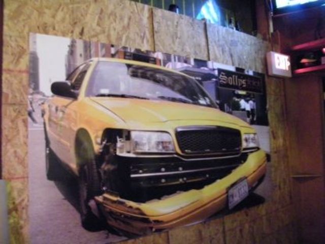 This photo, courtesy of U Street Girl, at least shows that the staff of Solly’s is still in a good mood amidst the aftermath terrible taxi cab accident that knocked out one side of the bar’s building. The blog’s author talked to owner John “Solly” Solomon last night during the bar’s first night after the accident — he said, “Well, no one got hurt, so you just gotta laugh about it.” Good on you, Solly’s.
