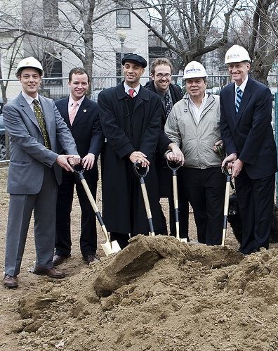 How big of a deal are doggie politics to D.C. residents? Big enough to cause D.C. Mayor Adrian Fenty and Ward 2 Council member Jack Evans to show up for the groundbreaking at the new S Street Dog Park. Flickr user maxedaperture stopped by the ceremony yesterday and snagged a few good shots. The triangle park at 17th and S Streets NW had been an unofficial dog park for years, and the city finally approved turning it into an officially sanctioned dog park last summer.