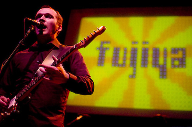 There is this misconception among the world of rock ‘n’ roll that being self-referential in songs is patently uncool. Oh sure, back in the 1950s and ’60s, ironically asking “Who are you?” or proudly proclaiming “Hey, Hey, We’re the Monkees!” was perfectly acceptable, but barring an occasional song like “The Dismemberment Plan Gets Rich!”, being self-referential is usually relegated to the world of hip-hop (good and bad) or narcissistic hoo-hahs like Kid Rock. But British rock outfit Fujiya & Miyagi aren’t afraid to let you know who they are, whether they’re repeatedly saying their own name during “Ankle Injuries” or plastering it on the projection screen behind them, and they manage to come across as cool doing it.