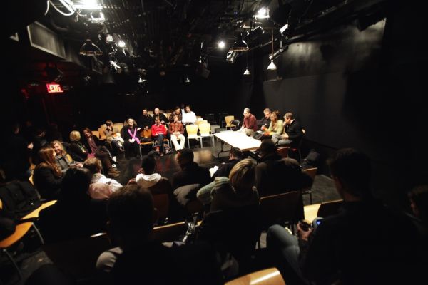 Big thanks to the nearly 70 people who made it out last night for Emerge Exposed, our panel discussion for the DCist Exposed Photography Show. Brian Knight Photography took this wide angle shot as people filtered in to Flashpoint’s Mead Theater Lab to take their seats (and also gave his own live-tweet of the discussion, cut and pasted to his Flickr caption). You can see our four panelists waiting to share their knowledge about all things photography, and I, for one, can say I learned a ton this year. Thanks to the Pink Line Project and the Cultural Development Corporation for organizing this event again for us.
