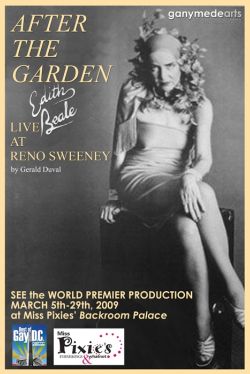Luckily, it’s pretty unlikely that the Edie-uninitiated is flocking to After The Gardens. This is the inaugural production of Ganymede Arts (formerly Actors’ Theater of Washington), the GLTB arts company that’s been absent from the stage since it renamed itself and changed its mission. After The Garden is a reminder of how much we’ve missed their presence on the scene, from their unconventional choices of work to the talent of artistic director Jeffrey Johnson, who stars in After The Garden. Opening night of the show seemed packed with Ganymede devotees — who certainly knew their Edie, and seemed happy to see her personified.
