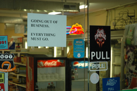 Photo by Ian BuckwalterThe Dorchester Market, the once well-stocked bodega in the basement of the Dorchester House apartments at 2480 16th Street NW in Adams Morgan, will be no more come week’s end. Residents of the building and the local area who frequent the shop may have noticed the recent precipitous drop in the restocking of goods: the gradually emptying freezer case, the large blank spots on the shelves, and finally, a couple of weeks ago, the disappearance of every magazine & newspaper from the counter newsstand. Those who guessed it couldn’t bode well were right: last week, two-for-one specials started popping up, and then a simple, “Going out of business. Everything must go,” sign on the doors indicated that the end was indeed nigh.