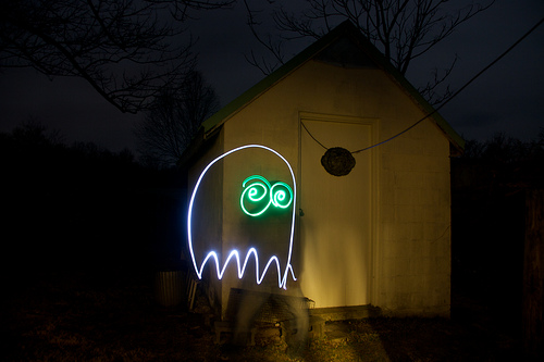 Flickr user yonas1 tries to scare us with a ghost this Friday the 13th. More cute than scary, the green eyed ghoul was created by a photographic technique called light painting. We ain’t afraid of no ghost. EXIF.
