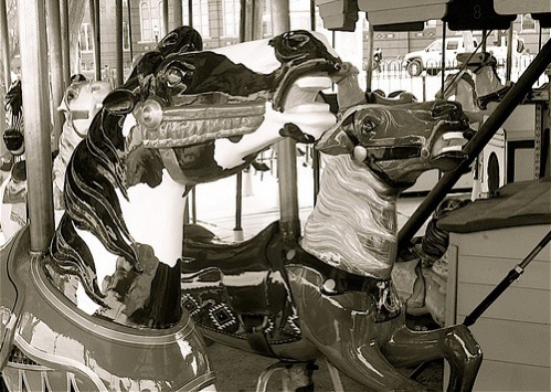 It’s hard to see sophiagrrl‘s photo as something other than a thick, soupy abstraction. In this high-key image, white patches on the figures bleed into the background, while the wide range of gray values is emphasized.