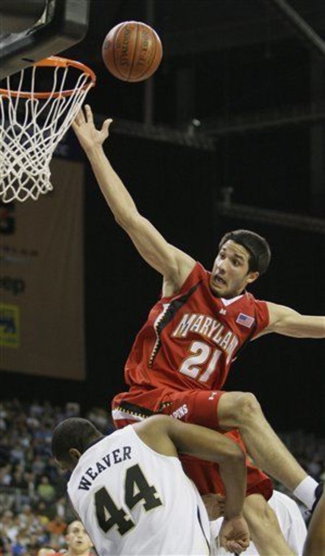 Maryland’s Greivis Vasquez skies over Wake Forest centerDavid Weaver. (AP Photo/John Bazemore)