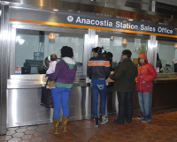 Does the thought of having to wait in line to get your major Metro transactions done at the busy Metro Center Sales Office leave you putting off taking care of renewing your bus passes or replacing a stolen SmarTrip card? WMATA announced today the opening of a brand new full service sales office located in the Anacostia Metro station. The new sales office, served only by the Green line but also by literally dozens of Metrobus lines, is sure to be at least a little less crowded than Metro Center during rush hour. The office replaces a sales facility at the former Southeastern Metrobus Division, which closed last year when the new ballpark opened.