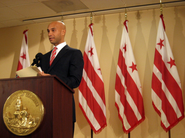 When he finally took the podium, Fenty made a few glowing remarks about the Holmes Wellness Center, and then launched into what he came there to do: read off a bunch of numbers. The number of students who graduated from DCPS’s summer school class increased from 155 to 470. Schools facilities chief Allen Lew completed more than 27,000 work orders. The city hired 151 new police officers. More than 600 families and individuals were placed into supportive housing. DC Circulator bus service has grown by 16 percent. 220,646 potholes filled. And so on.