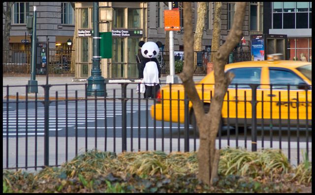 - Gothamist was intrigued by the Sad Panda seen walking around Manhattan.