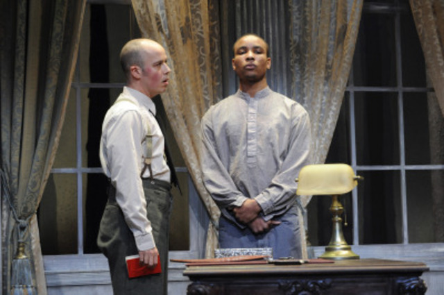 Perhaps it shouldn’t be so shocking — after all, this is a play that has to convincingly tie together two seemingly disparate story lines: a tale of a Southern gentlewoman psyched for the premiere of Gone With The Wind who’s entertaining a black woman who’s stopped in for some water, and that of a Nazi commander whose relationship with a black prisoner looks like it’s one between master and sex slave. Turns out the two tales have far more in common than one might imagine, and come together satisfyingly, movingly, and above all, horrifyingly.