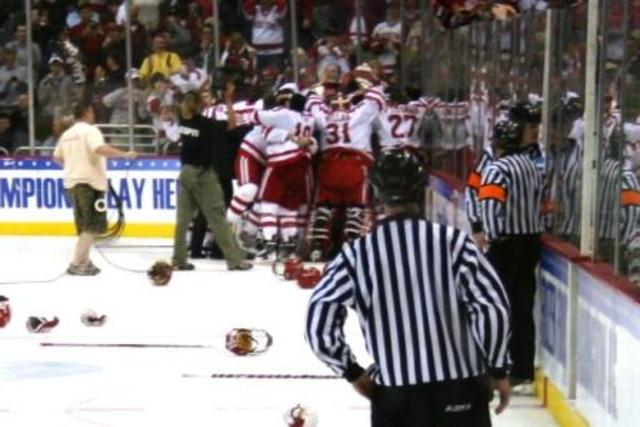 Last second drama at the Frozen Four final, played at the Verizon Center on Saturday night, was the fitting culmination of an NCAA hockey tournament for the ages. Boston University and Miami (Ohio) faced off for a championship after Thursday night semifinal victories. Miami took a 3-1 lead deep into the third period, and an underdog win and unlikely champion would have been par for the course in a 2009 full of upsets. BU goalie Kieran Millan was pulled with 3:32 remaining in the 3rd period for an extra attacker, and when the clock wound down towards one remaining minute, the Terriers were all but finished. When they buried the puck with 59.5 seconds remaining, 3-2 was likely too little too late. But BU’s desperation attack was poised and relentless, and with 17.4 seconds to play, Boston’s Nick Bonino one-timed a shot past the left side of a beaten Cody Reichard. It was a heart stopping turn of events for Miami, a team and fan base who could all but hear the final horn and see a championship as the light at the end of a 60-second tunnel.