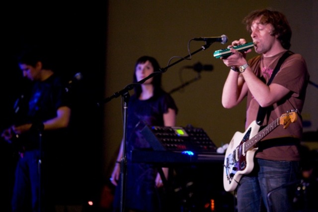 French musician Yann Tiersen is probably best known in the U.S. for his Amelie score, with its gentle, sad, and mostly acoustic songs on piano, guitar, and accordion. In his U.S. debut yesterday at La Maison Française, the French Embassy’s performance space, however, he was much more Yann the rocker rather than Yann the minimalist composer.