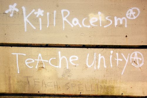 Heh. “Teach spelling,” indeed. The Skipping Hippy found this unfortunate graffiti in Takoma Park, Md.