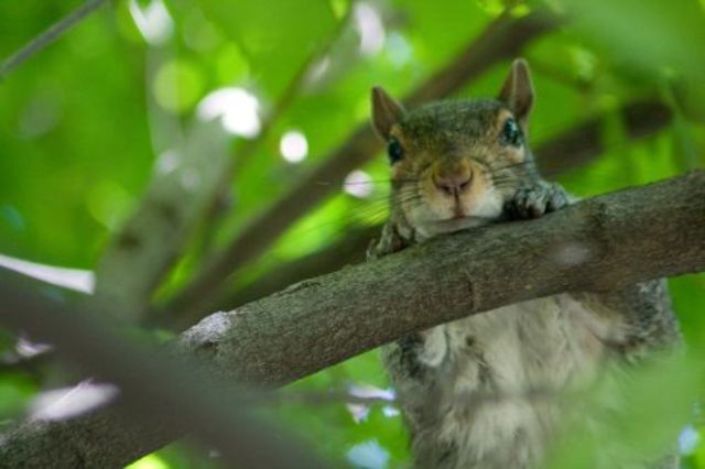 sarahwithoutanh001 took this great close-up of a fearless, beady-eyed squirrel just chillin’, enjoying a little bit of shade from today’s warm sunshine beneath the leaves.