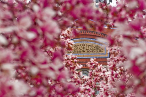 mosley.brian took the liberty of uploading a couple of pictures from earlier this spring to our DCist Flickr photo pool today; among them, this interesting perspective of the Smithsonian Arts and Industries building through waves and waves of cherry magnolia blossoms. The shot, while not as accurate as an actual Ishihara color test, is probably a stiff test for those of you with dichromacy, anomalous trichromacy, or achromatopsia.