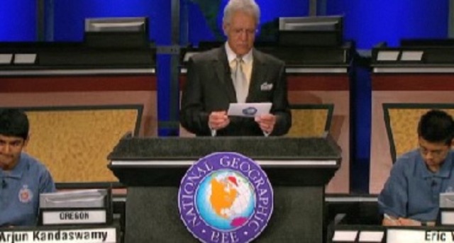 If you thought you spied Jeopardy! host Alex Trebek around town this week, you weren’t mistaken. The formerly moustachioed game show personality was back again this year to host the annual National Geographic Bee, which finished up today by crowning Eric Yang, 13, a seventh-grader at Griffin Middle School in The Colony, TX, with the first place title.