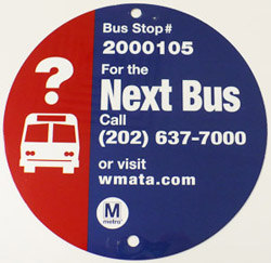 Fairly exciting news from WMATA: the transit agency let the world know this morning that they are planning to relaunch the much-clamored-for Next Bus service on July 1. In preparation, your bus stop du jour will be getting new signage anyday now. The Next Bus system, which uses GPS technology to accurately estimate the real-time arrivals of buses, should really assist those of us — all of us, I should say — who know the frustration of waiting forty minutes in the rain for a Metrobus, only to find three bunched buses, arriving at the same time.