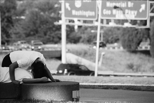 When last we checked in on akkleis‘ voyeur series, she was secretly stalking a couple behind a tree. The most recent entry in the series documents a game of tonsil hockey by the Iwo Jima Memorial. Hope they found cover before the storm, though.