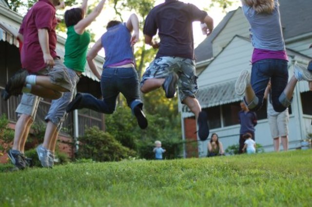 erin m lept for joy at a party in honor of Cheverly Day.