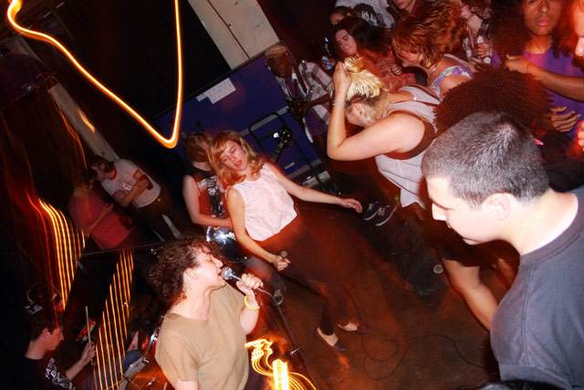 It’s not often that, on your way into a punk rock show, you have to carefully skirt around the band members, for fear of interrupting their ping-pong match. Or that, while waiting for the bands to finish setting up, you join a roomful of families in a rendition of “Happy Birthday,” directed at a beaming girl seated in front of an ice cream sundae. Then again, Comet Ping Pong, the noted upper Northwest pizza parlor/ping pong establishment, isn’t your average venue. Recalling both the DIY ethos and multitasking charm of Chicago’s storied Fireside Bowl, Comet turns out to be the ideal venue for a band like Mika Miko, who are known as much for their involvement with L.A. all-ages performance space The Smell as their back-to-basics take on three-chord punk rock.