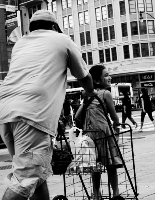 This is just a perfectly sweet shot, with a great angle as the happy little girl looks over to grin as her dad pushes her along. Bogotron caught a classic everyday scene with a nice summer feel to it. EXIF.