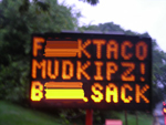 Image from WTOPThat’s the message some commuters on the Key Bridge may have gotten this morning, as somebody changed a couple of electronic road signs to say naughty things — namely “F**KTACO/MUDKIPZ!/BALLSACK,” although without the asterisks. Needless to say, the Virginia Department of Transporation was not amused, reports WTOP.