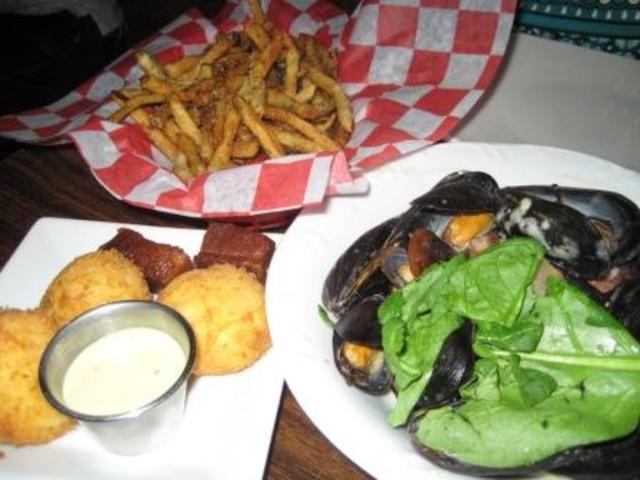Folkman’s reputation has been made largely by his mussels and frites, and he adeptly recreates his popular bacon and blue cheese version brought over from Granville Moore’s. It’s the dish that beat Bobby Flay in a “throwdown” and is for the most part a bargain at $12. However, the house-made fries were over-seasoned with a salt and herb mix. A less salty fry would work better for dipping in the lemony white wine broth remaining in the mussel bowl. A grilled chicken sandwich looks so succulent on another diner’s table that we ask for our own. The chicken is grilled and seasoned adeptly and served on a crusty, square onion roll. A sprinkling of barbeque potato chips and chipotle-mayo covered jalapeño slices add a slight kick as sandwich toppers.