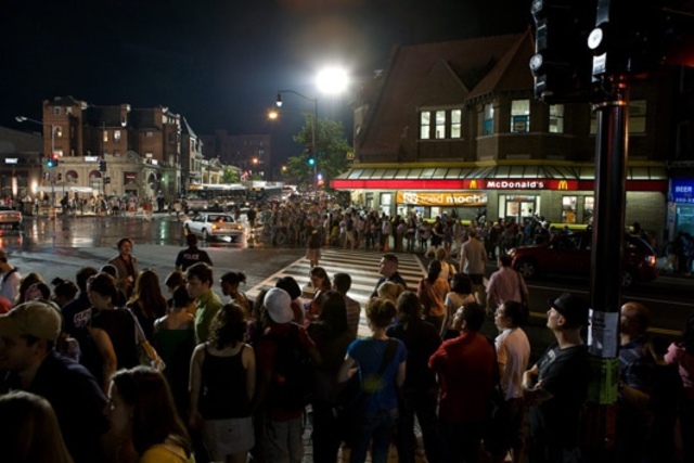 The number of people at the corner of 18th and Columbia Tuesday night looked more like what you’d expect on a Saturday night. Except that it was as bright as day. From around 9 p.m. to well beyond midnight, a sizable crowd gathered on the sidewalks that weren’t in use by the teeming film crew to get a close-up view of the complexities involved in making a big-budget film.