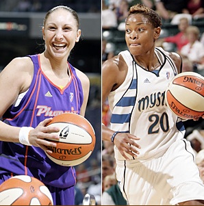 Diana Taurasi of the Phoenix Mercury (left) and Alana Beard of the Washington Mystics.If you get goosebumps watching Ovechkin vs. Crosby, LeBron vs. Kobe, or Tiger Woods vs. everyone else, give this matchup a try: Diana Taurasi of the Phoenix Mercury vs. Alana Beard of the Washington Mystics, both first round picks in the 2004 WNBA draft. Taurasi’s Mercury – the highest scoring team in the WNBA – held on in the final seconds of the fourth quarter Thursday to win over the Mystics, 93-87.