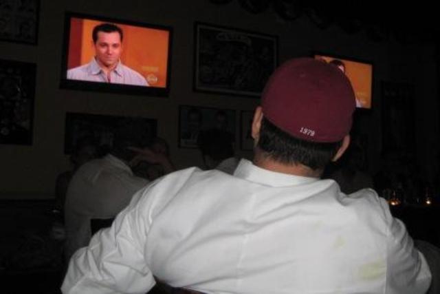 Chef Teddy Folkman watches himself in an episode of The Next Food Network Star.Teddy Folkman, D.C.’s latest representative on the reality food television circuit, was sent home from The Next Food Network Star in last night’s episode. It was the fourth episode of the season—he outlasted three of the ten fellow contestants, but didn’t make it to cook in Rachel Ray’s studio in episode 5. The ouster wasn’t a product of poor cooking, though we weren’t too thrilled with much of his offerings from his relaunched Capitol Lounge menu. In fact, his haute DLT sandwich (duck, lettuce, and tomato) won praises from the show’s judges in last night’s elimination challenge.