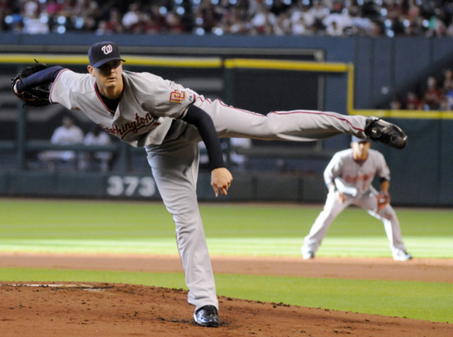 Scott Olsen follows through on a pitch in the first inning against the Astros last night. (AP Photo/Pat Sullivan)Astros 6, Nationals 5: They’ve got to be running out of new ways to lose games — as manager Manny Acta put it succinctly after the game: “well, we blew another one.” Tonight, it was a foul pop-up — which the left side of the Nats defense inexplicably decided to let drop to Earth — and a Gold Glove tag from Pudge Rodriguez that cost Washington dearly as they dropped their fifth straight game. Starter Scott Olsen (6 IP, 4 ER) provided an adequate enough effort, and the Nats looked prime to grab a win after an impressive four-run top of the seventh. In that frame, Adam Dunn and Josh Willingham started off the outburst with back-to-back doubles, and four of the next five batters singled to give Washington a 5-4 lead. But after the previously mentioned unaddressed pop-up, pinch-hitter Jeff Keppinger squared matters with a sacrifice fly in the bottom of the eighth. And after Harris couldn’t score from second on Nyjer Morgan’s base hit in the top of the ninth, Mike MacDougal loaded the bases in the home half. Astros third-baseman Geoff Blum provided the death blow, singling in the winning run. Moreso than Blum, though, the Nationals will certainly be cursing Astros center fielder Michael Bourn, who was plus-six on the night — knocking in three, scoring once, and earning two assists by impressively throwing out two Nats at the dish.