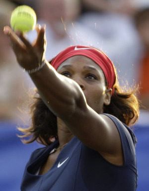 Washington’s Serena Williams is about to serve in a women’ssingles match against Philadelphia’s Madison Keys.