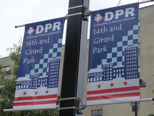 Photo courtesy Prince of PetworthThe recently renovated community park at 14th and Girard Streets NW now has a potential name: Ward 1 D.C. Council member Jim Graham introduced a resolution today to rename the park “Barack Hussein Obama Park,” D.C. Wire reports. If the resolution is passed, the park, which features a basketball court, year-round chess tables and an interactive water jet play fountain in the summer, would be the very first official anything to be named after President Obama in the District of Columbia.