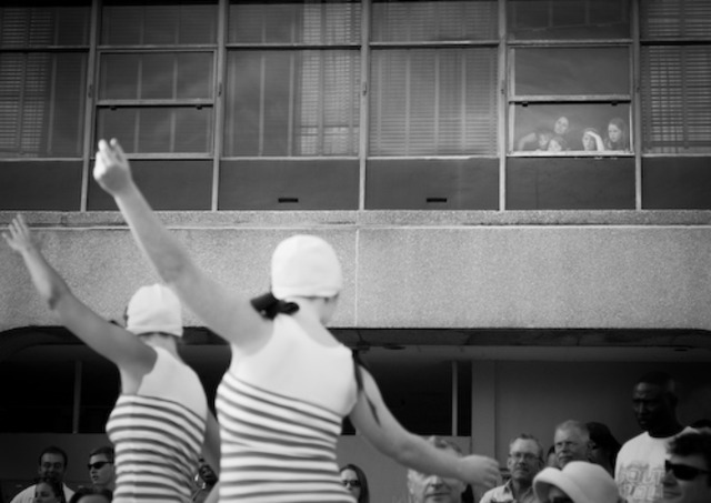Guests of the Capitol Skyline Hotel watch from their window as one WPA SynchroSwim team, Jeremy Flick and Uprooted Dance, danced poolside at the Skyline Hotel.